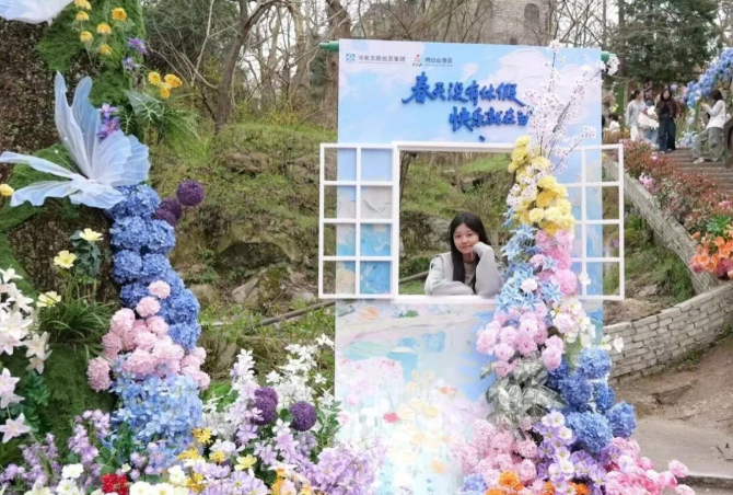 林州太行大峡谷推出 “赏花春游季”,联动全国顶流国风达人盛装参与,化身十二花神与游客开展零距离互动、合影打卡,玫瑰花海、仙侠场景、国风巡游刷屏社交平台,高颜值阵容搭配沉浸式游园体验,成为假期景区最具人气的核心亮点。五朵山景区以 “春染五朵山 花神映龙湖” 为主题,将 “莫奈花园” 搬进伏牛山水,日间花船漫游、花艺打卡,夜间光影秀、天女散花威亚、湖畔音乐会轮番上演,实现 “日夜双景、全时体验”。