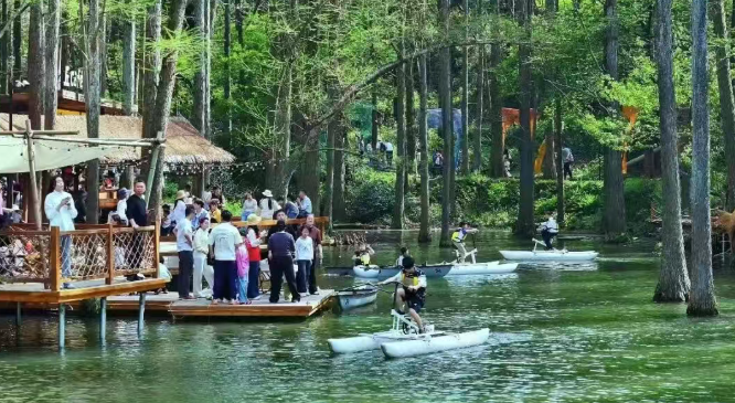 波尔登森林公园以 “追逐波尔登第一抹绿” 为主题,创新举办森林音乐节,百年落羽杉林、平汉铁路老火车、森林露营营地成为年轻游客打卡热点,生态与潮流深度融合。鸡公山景区 “仙野探春季” 亮点纷呈,打造绿野仙踪秘境、梦幻花海、灯笼夜游长廊,大地之丘森系营地全新开放,一站式满足踏青、休闲、露营、社交需求。大地之丘槐花季浪漫启幕,槐花市集、手作体验、槐花宴、湖畔露营、水上项目,为城市游客提供 “推帐即景、枕花而眠” 的治愈体验。丹江大观苑以 “中原看海” 为特色,春日花海、古装游园、红嘴鸥观赏、养生药膳同步上线,生态观光与康养休闲相得益彰。