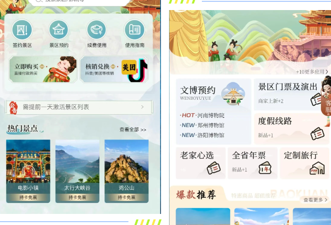 假期期间,“一机游河南” 省级智慧文旅平台持续发挥重要作用,整合全省673 家景区、700 余家文博场馆、3万余家酒店民宿资源,提供一站式预约购票、AI 智能导览、线路推荐、文创商城、定制旅行等全流程服务,推出河南文旅一码通产品,138元即可畅游全省百家景区,以数字化、智能化提升游客出行便捷度。与此同时,多项惠民政策密集落地:红旗渠景区对山西游客免门票,太行屋脊对 “山河四省” 游客免票;太行大峡谷、银基、电影小镇等推出特价票、家庭套票、夜场优惠票,切实降低游客出游成本,彰显国企责任与温度。