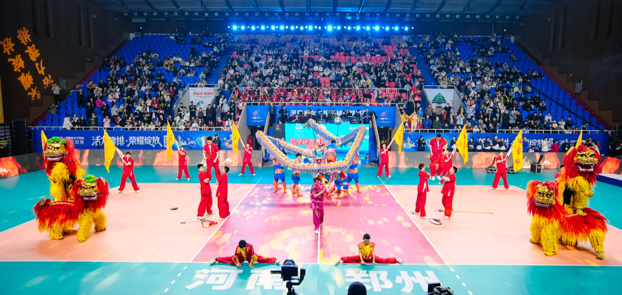 银基国际旅游度假区啦啦队带来城市文旅特色表演,完美诠释"跟着豫排去旅行"的赛事理念。从非遗展示到现代演艺,河南厚重的文化底蕴在赛场绽放新光彩。